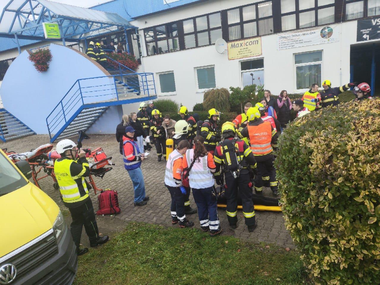 Více než 30 studentů VOŠ MILLS se v říjnu zapojilo do rozsáhlého cvičení složek Integrovaného záchranného systému (IZS), které se konalo na zimním stadionu. Akce simulovala hromadný únik nebezpečného plynu a byla zaměřená na koordinaci zásahu hasičů, policie a zdravotnické záchranné služby.