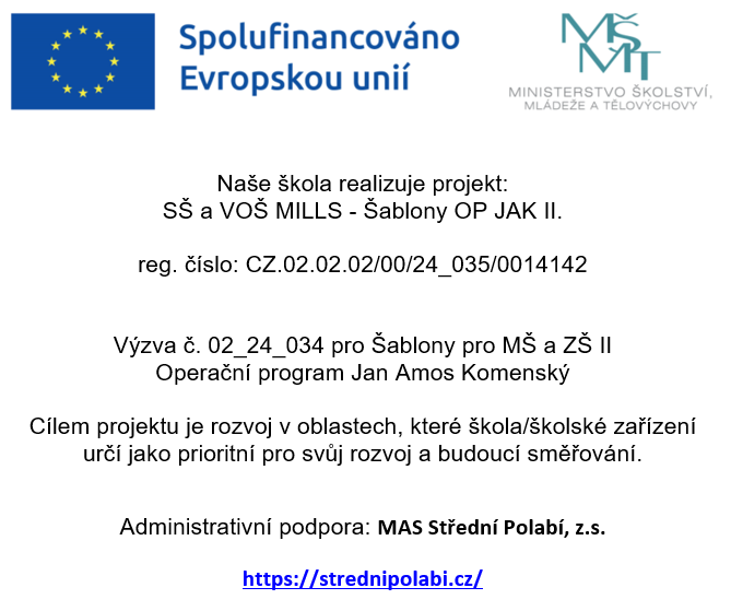 Naše škola realizuje projekt: SŠ a VOŠ MILLS – Šablony OP JAK I