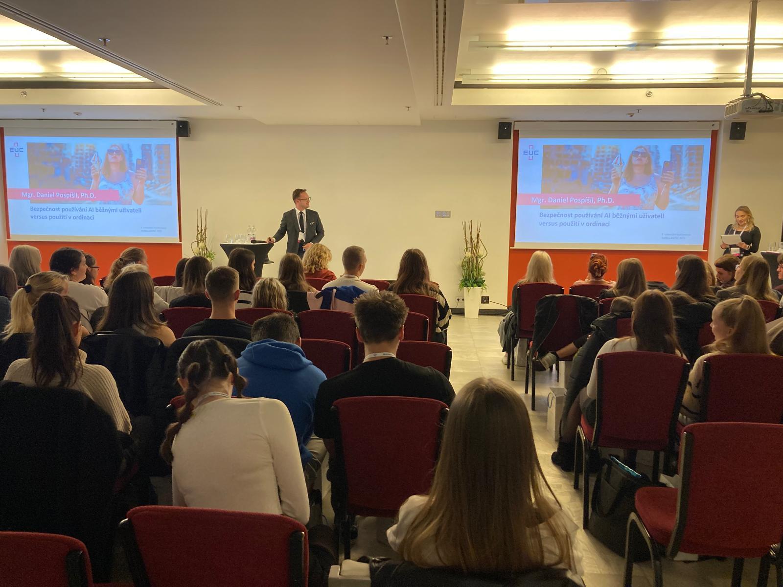 Velkým úspěchem školy bylo také vystoupení naší loňské absolventky Markéty Rozsypalové, která v sekci určené studentům nelékařských zdravotnických oborů představila svůj odborný příspěvek na téma využití umělé inteligence v ošetřovatelské péči. Její prezentace vycházela z absolventské práce, kterou obhájila právě u nás na škole, a vzbudila zasloužený zájem publika.